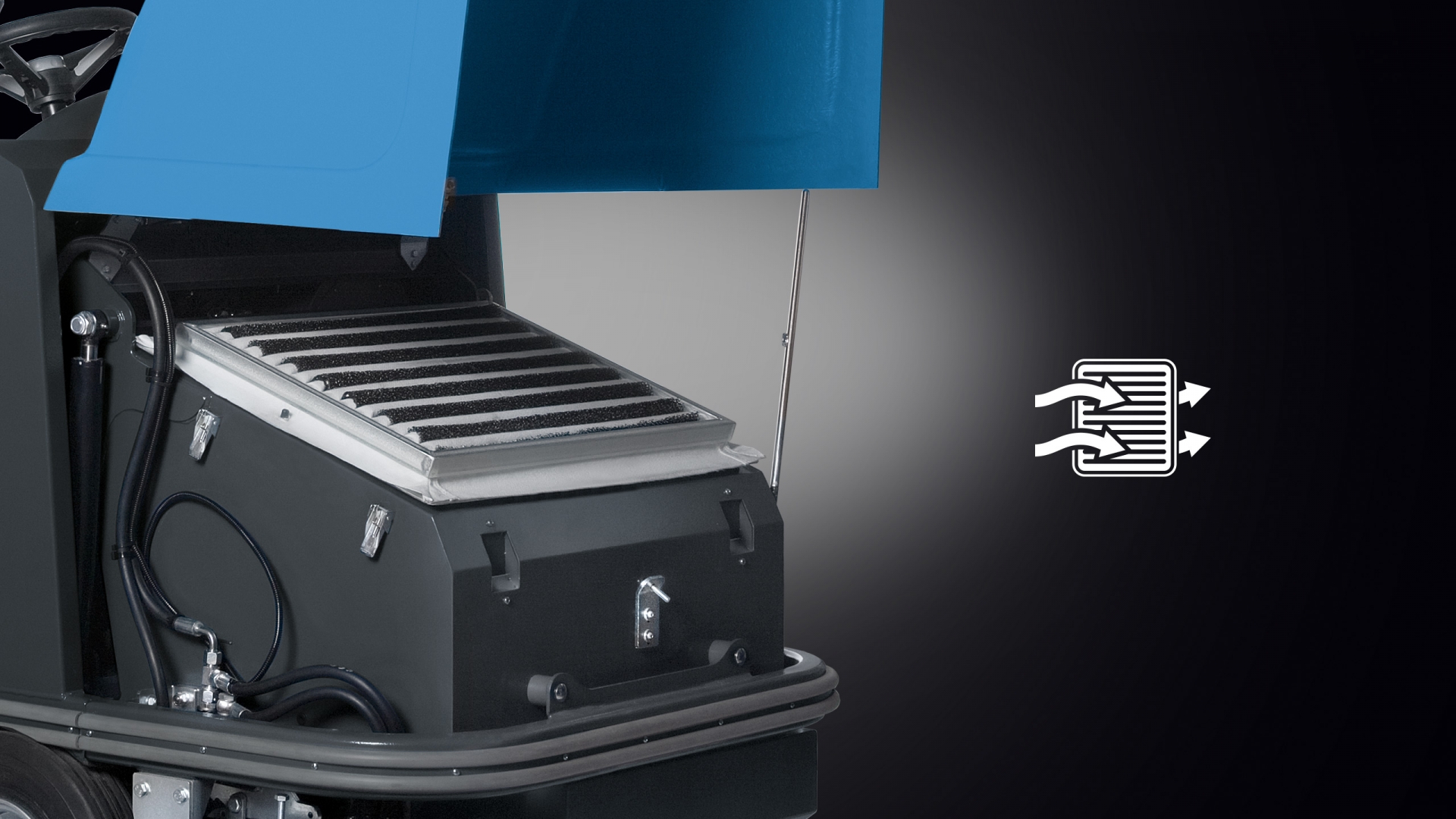 FS90 è la spazzatrici più compatta del suo segmento. Nasce con un telaio scatolato costruito intorno alla spazzola centrale e dalle dimensioni estremamente contenute. Questo consente a FS80-90-110 di trovare impiego sia per la pulizia delle grandi superfici che in passaggi ristretti o ingombrati.